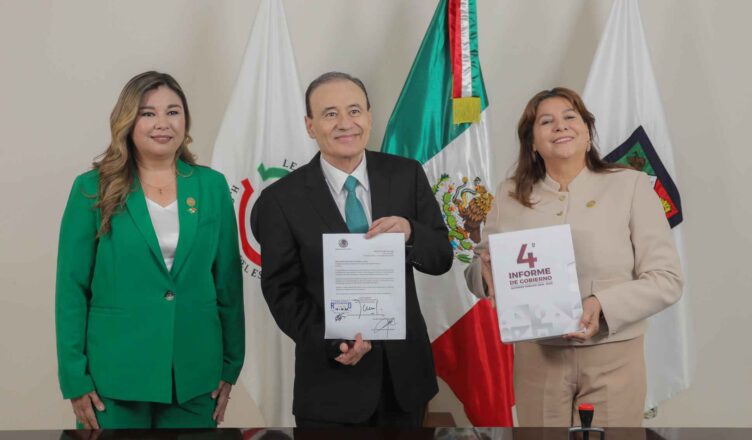 En compañía de la diputada Jazmín Guadalupe Gómez Lizárraga (PT), presidenta de la Comisión de Régimen Interno y Concertación Política (Cricp), la diputada presidenta destacó que la entrega del informe se realiza en cumplimiento de los artículos 46 y 79, fracción octava, de la Constitución local, y subrayó que el congreso lo analizará con responsabilidad y atención.