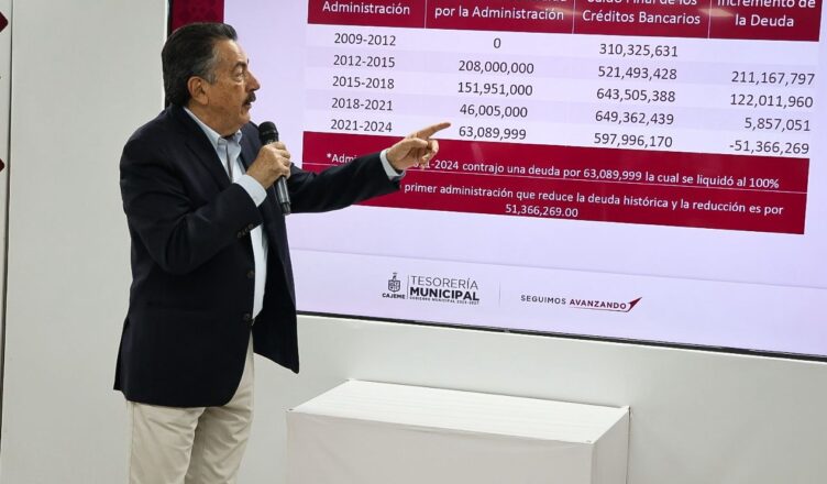 Durante el programa La Comenta, el Alcalde, acompañado por el Coordinador General de Tesorería, Álvaro Palma, agregó que la deuda pública heredada, de más de 649 millones sin pagar, al cierre de 2024 se pagaron de 51 millones 366 mil 296 pesos, con el fin de disminuirla a 597 millones 966 mil 169 pesos, además de dejar en cero la deuda contraída por la presente administración.